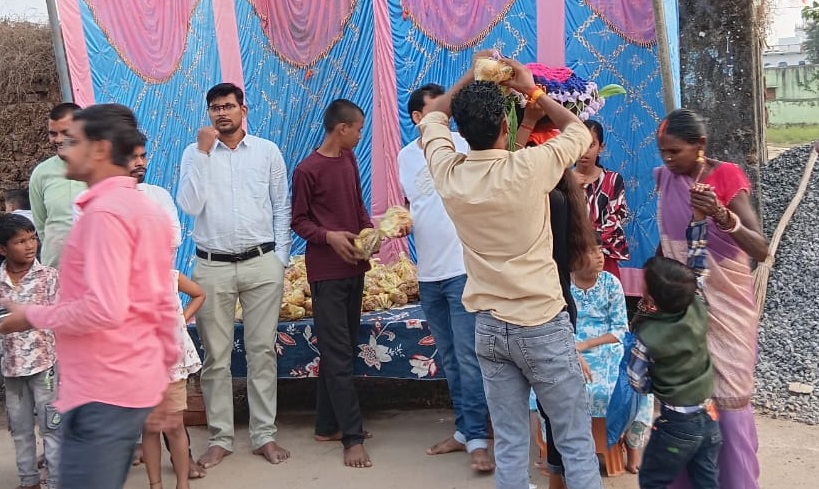 छठ पूजा के अवसर पर आदर्श युवा क्लब धनगवां ने किया श्रद्धालुओं के बीच फल वितरण