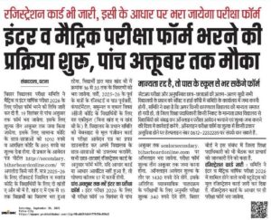 BSEB Matriculation and Intermediate Exam 2026 : बिहार विद्यालय परीक्षा समिति (BSEB) ने मैट्रिक एवं इंटर वार्षिक परीक्षा 2026 में शामिल होने वाले छात्र-छात्राओं के लिए फॉर्म भरने की तिथि घोषित कर दी है। बोर्ड का ऑनलाइन पोर्टल 19 सितंबर से 5 अक्टूबर 2025 तक खोला गया है। विद्यार्थियों को 3 अक्टूबर तक परीक्षा शुल्क … Continue reading BSEB मैट्रिक एवं इंटर परीक्षा 2026 फॉर्म भरने की तिथि घोषित